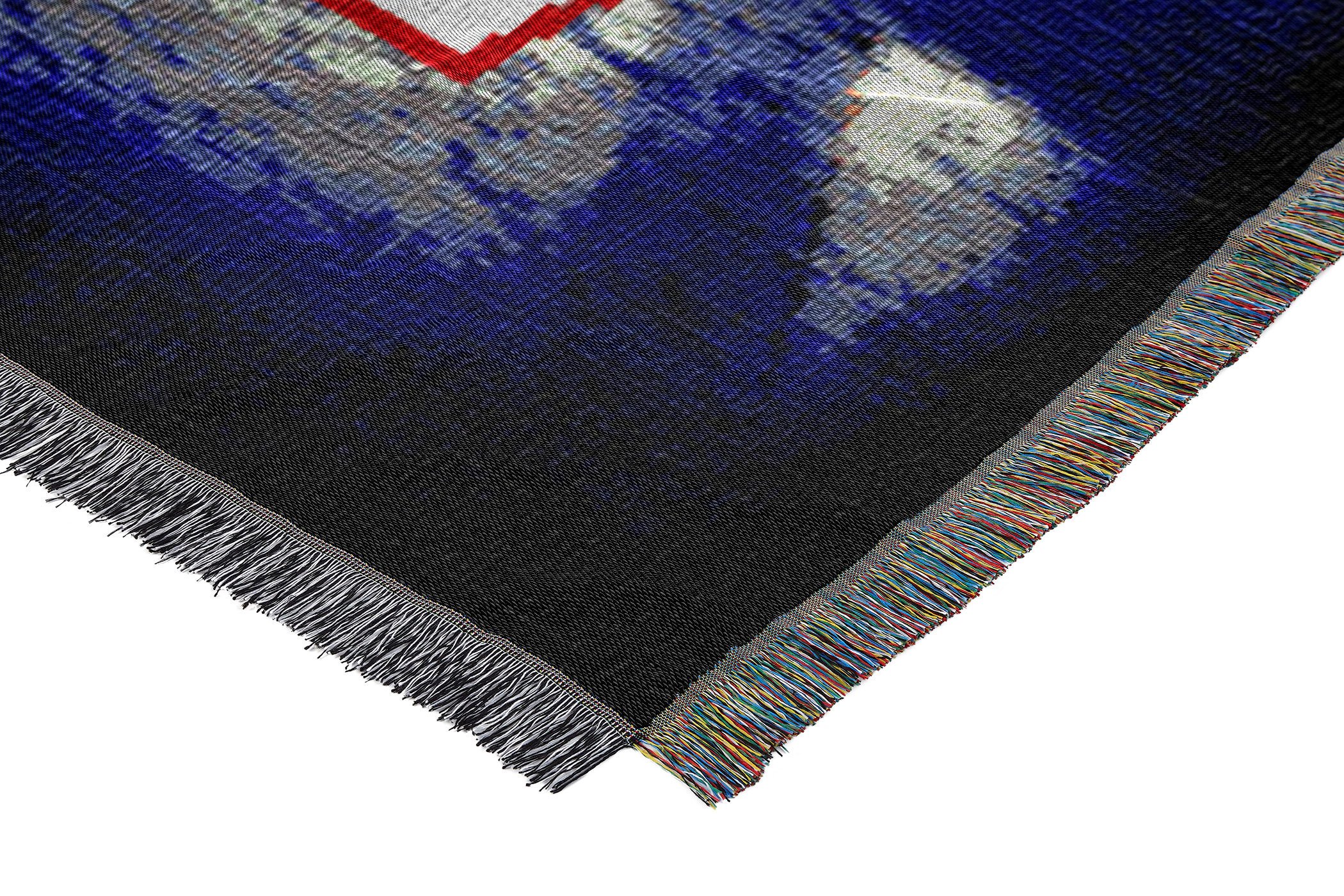 Detailed, woven tapestry; decorative fringes around all edges; made in America