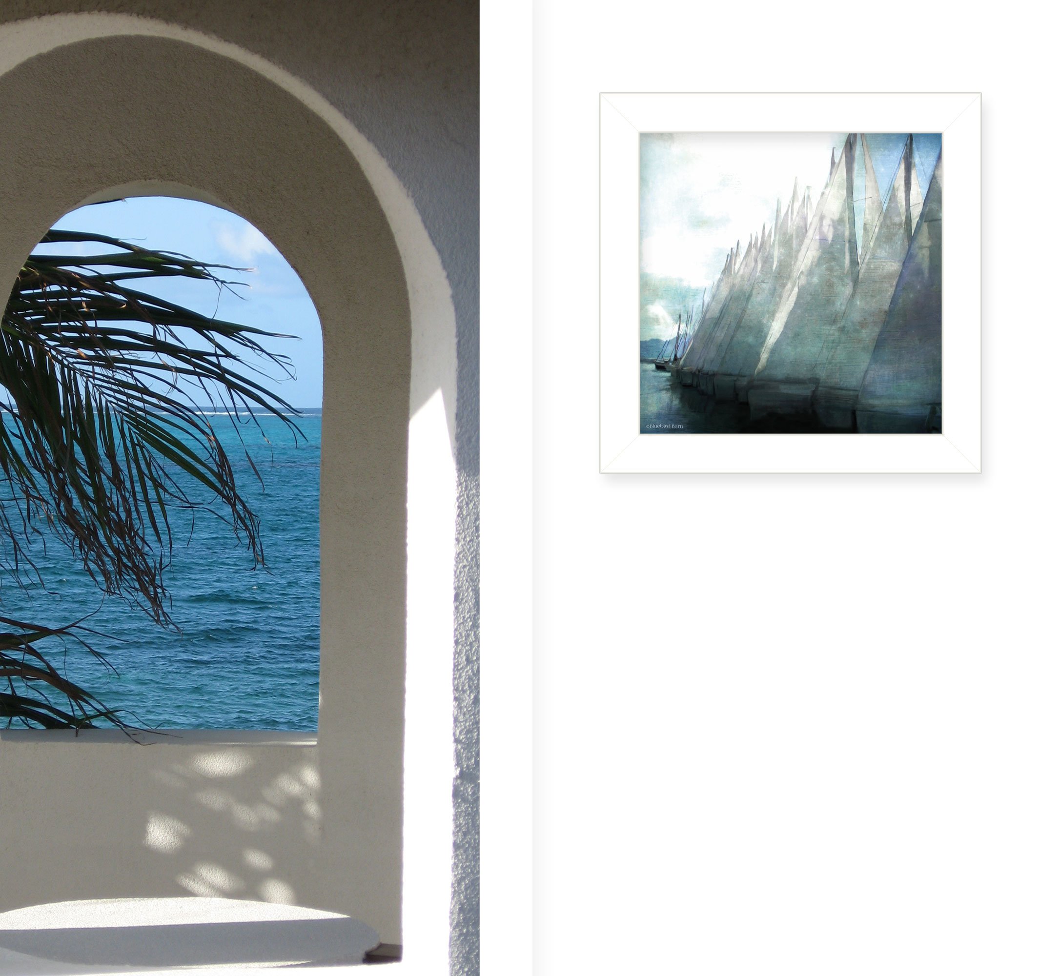 Blue101-226 "Sailboat Marina I" by artisan Bluebird Barn Group. This decorative white framed print (15x15) of sailboats at the marina. A line of beautiful colors sailboats in a line with all mast up ready for a day on the ocean. This framed art is totally American made. The surface of the art is coated with a fade resistant texture which gives it a canvas-like appearance. No glass is necessary. Arrives ready to hang. To view a 2-piece vignette, including this print, please search: V595-226 •Print has fade resistant surface texture, no glass is necessary•Woman Owned Busines (WBE)•Arrives ready to hang, no additional hardware needed on item•individually hand crafted by skilled American workers•frame mitered with precision equipment•Framed art with no glass for safety around children