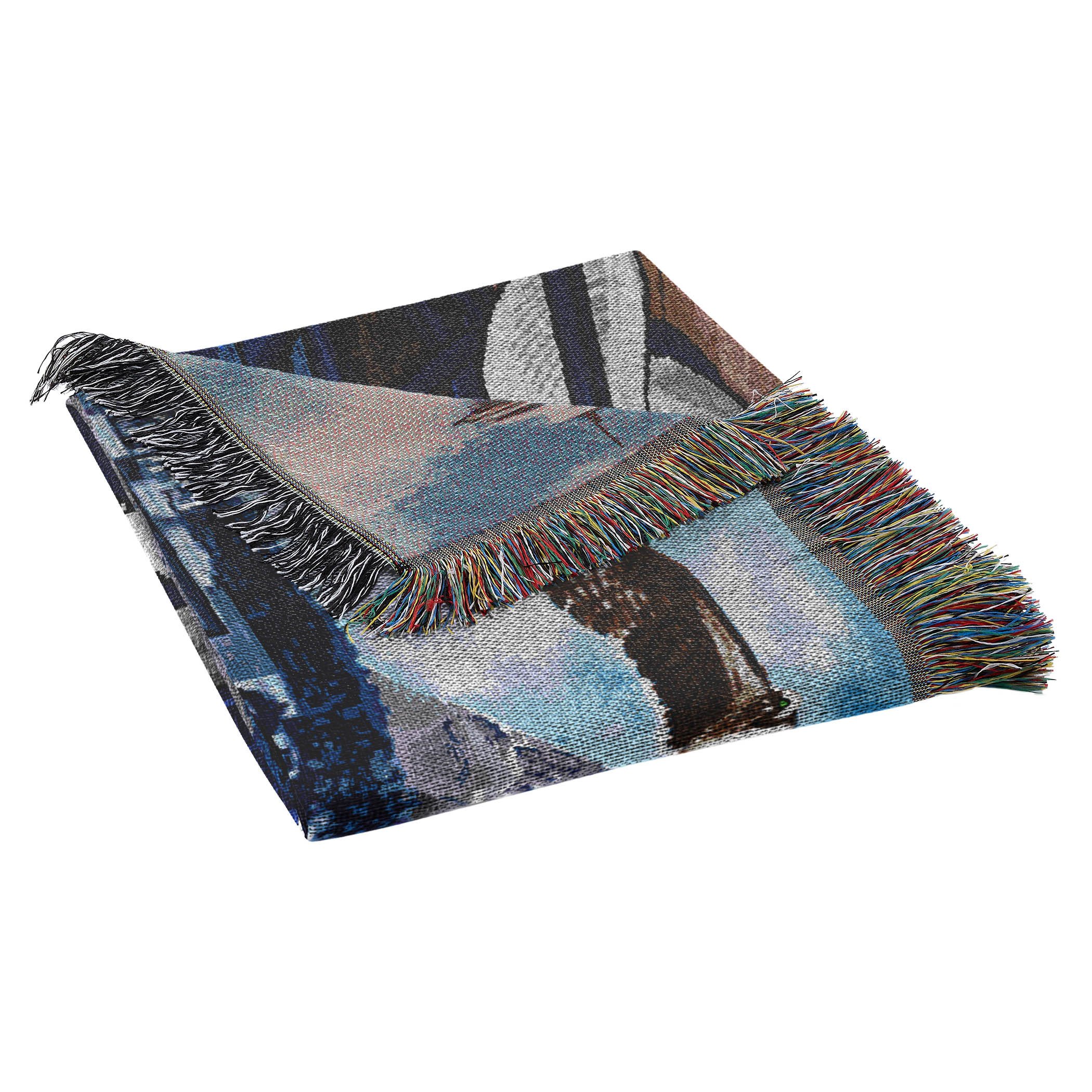 Detailed, woven tapestry; decorative fringes around all edges; made in America